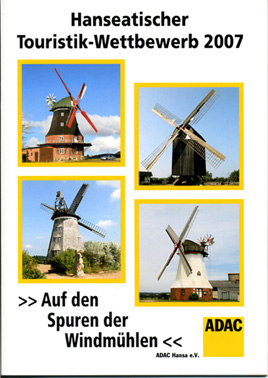 Die Touristiker des ADAC Hansa e.V. sind echte Mühlenfans! - Bereits 2004 folgte die alljährliche touristische Suchfahrt des Auto- mobilclubs den “Spuren der Wassermühlen” und in diesem Jahr 2007 sind die historischen Windmaschinen der norddeutschen Mühlenregionen Ziele eines heimatkundlichen Wettbewerbes. - Aus Sicht der Mühlenerhaltung zwei überaus sinnvolle und erfreuliche Veranstaltungen, die neben einer Wissensmehrung für den technisch- historisch interessierten Spurensucher auch wichtige Impulse und Wirkungen für die öffentliche Wahrnehmung eines bedeutenden Kulturgutes erwarten lassen. Der erfahrene Fährtenleger Rolf Kaphengst hat zwischen Hamburg und Usedom 24 Standorte historischer Windmühlen als Suchorte ausgewählt. Genau die Hälfte gruppiert sich ziemlich komplex im Raum Hamburg und umzu, die Standorte der anderen Hälfte erstrecken sich in westöstlicher Ausdehnung durch Mecklenburg-Vorpommern bis zur Insel Usedom und zu jenem Ort in Nähe der polnischen Grenze, der einst den stolzen Beinamen “Stadt der sieben Mühlen“ trug. Zur Teilnahme ist jedermann berechtigt, sofern er die Bedingungen der Ausschreibung anerkennt. Die Teilnehmergebühr beträgt 15,50 EUR. Die Wettbewerbsunterlagen erhält man in den ADAC-Geschäftsstellen. Bis zum 23. Oktober 2007 müssen die Lösungen der Suchaufgaben dem Veranstalter vorliegen. Für die Gewinner findet am 13. Januar 2008 im Congress-Centrum Hamburg eine Siegerehrung statt, bei der man je nach Wertungsergebnis eine Bronze-, Silber- oder Goldplakette erringen kann. Allen Spurensuchern und dem ADAC Hansa e.V. ein herzliches