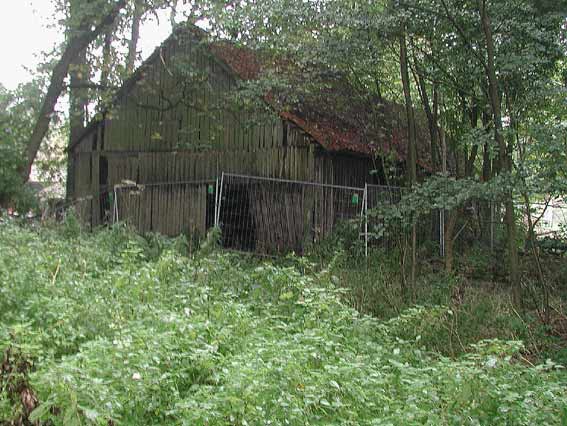 Die durch einen Absperrzaun gesicherte Brelenzer Sägemühle an ihrem ursprünglichen Standort an der Crammühle. Aufnahme vom 27.September 2001.