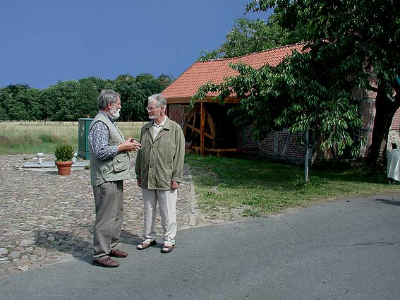 Norbert Distler aus Bussau (lks.) im Fachgespräch mit Prof. Dr.-Ing. Hans-Joachim Borck vom Windmühlenverein Bardowick anlässlich einer Aussenbesichtigung |