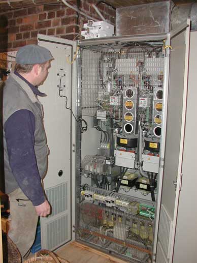 Der 21-KW-Generator auf dem Kappboden der Bardowicker Windmühle wird über eine Keilriemenscheibe direkt von der Königswelle angetrieben |