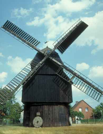 Die Bockwindmühle ist der Urtyp der mitteleuropäischen Windmühle. Ihr Mühlenhaus ist auf dem sog. „Hausbaum“ oder Ständer regelrecht aufgehängt. Ändert sich der Wind, muß das ganze Mühlenhaus neu in den Wind gedreht werden. Im späten Mittelalter war dieser Mühlentyp zu tausenden in ganz Mittel- und Nordeuropa verbreitet. Wenig ausbaufähig und anfällig gegen Sturm und Feuer waren sie, und doch hat sie die modernere Holländerwindmühle nie ganz verdrängen können. Heute stehen nur noch wenige von ihnen. Und noch weniger sind heute noch betriebsbereit. Eine von ihnen ist die Bockwindmühle in Hänigsen. 1704 errichtet, war sie laut einer Urkunde von 1705 für alle Zeit frei von jeder Abgabe, ein Recht, das bis heute Gültigkeit hat. 1945 stillgelegt, kaufte sie 1962 der Müller Schubotz von der Schubotz-Mühle in Celle (Nr. 71) setzte sie wieder instand und nutzte sie noch bis 1995 (!). Aus personellen Gründen kann sie zur Zeit jedoch nur noch gelegentlich in Gang gesetzt werden. Am jährlichen Mühlentag (jeder 1. Sonntag im September) steht die Mühle für Besucher offen.