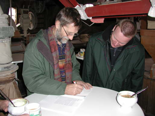 ........für die Mühlenfreunde ergab sich die ebenso willkommene Gelegenheit, ihr Buchexemplar durch eine Autorenwidmung veredeln zu lassen. Wie man sieht ein Vorgang, der Autor und Leser gleichermaßen ein sichtbares Vergnügen bereitet.