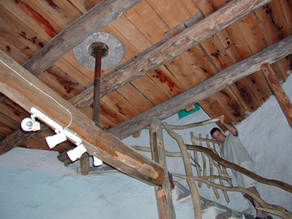 Steinmahlgang auf dem Kappenboden der griechischen Mühle Irini.