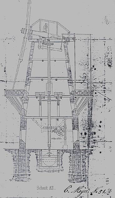 Bild 3: ÖLMÜHLENANLAGE IN DER WINDMÜHLE VON MÜHLENBESITZER MEYER ZU LAHDEBauzeichnung vom 28.11.1877 zur Verlagerung der Ölmühle in das Windmühlengebäude