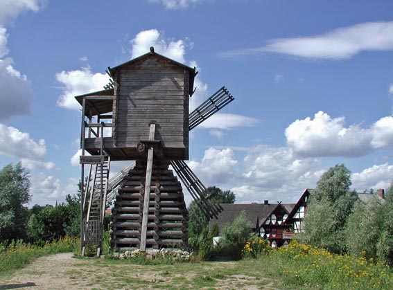 Die Bockwindmühle Maschenka - Diese typische russische Bauernmühle wurde in Russland von Holzfachhandwerkern gebaut und fand 2001 als Geschenk der Moskauer Andrej-Rubljow-Stiftung ihren Weg in das Gifhorner Museum.