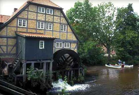 Die an der Este gelegene Mühle wird urkundlich erstmals um 1379 erwähnt. Der Wassermühlenstandort könnte indessen bereits früher genutzt worden sein. Die jetzige Mühle wurde 1639 erbaut und war Amtsmühle, was bedeutet, daß für die Bauern des Amtes Moisburg der Zwang bestand, ihr Korn in dieser und keiner anderen Mühle mahlen zu lassen. Deshalb hatte die Amtsmühle den Status einer Zwangs- oder Bannmühle, und es gab häufig Bittgesuche sowie Verstösse von Bauern aus entfernt liegenden Orten. Solche Konfliktsmöglichkeiten verschwanden erst 1869 mit der Einführung der Gewerbefreiheit. Ab 1652 wurde die Amtsmühle an die jeweiligen Amtmänner oder an die Müller direkt verpachtet. Eine 1750/1760 von Oberlandbaumeister Otto Heinrich von Bonn angefertigte Zeichnung zeigt eine Darstellung der Moisburger Mühle, der zu entnehmen ist, daß es ein Wehr und drei Wasserräder gab und daß sich das Mühlengebäude in der damaligen Form erhalten hat. Noch um 1930 liefen zwei Wasserräder, wurden jedoch durch den Müller Arnold Fitschen, der seit 1928 Besitzer war, im Jahre 1935 abgerissen und durch eine Turbine ersetzt. Der Kreis Harburg erwarb die Mühle 1982 vonm der Familie Fitschen. Nun begann die Restaurierung, wobei ein Wasserrad installiert und die Mühle als Außenstelle des Freilichtmuseums am Kiekeberg (bei Ehestorf) eingerichtet wurde. Aufgabe des Museums ist es, das gesamte Mühlenwesen des Kreises Harburg museal aufzuarbeiten, zu erforschen und auszustellen. |