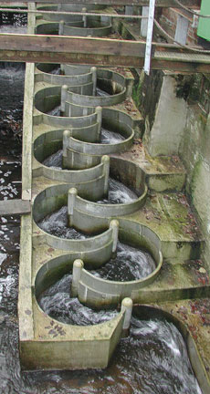 Energiegewinnung an der Suderburger Wassermühle - zwei Wasserräder in der Hardau - Ausführung in Edelstahl d= 1,85m ; b = 1,50m |