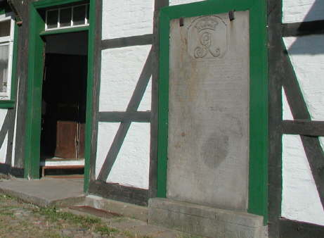 Neben der hofseitigen Tür zur Mehlmühle befindet sich an der Gebäudewand eine Gedenktafel aus Sandstein, die Krone und Insignien des Landesherrn, Kurfürst Georg von Hannover, zeigt. Mühlenpächter Johann Georg Bertram setzte diese Tafel zur Erinnerung an die Erneuerung der Freischleuse und des Mühlenwehres im Jahre 1721. Das Selbstbewußtsein der Bertrams war so stark, dass sie sich nicht scheuten, die Krone auch in ihr Familiensilber gravieren zu lassen.