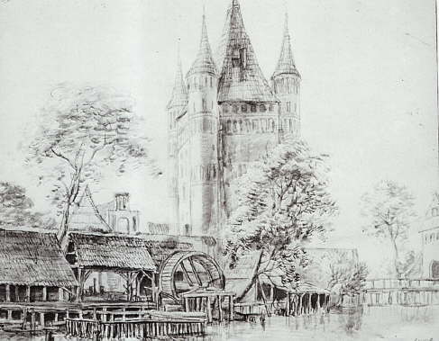 Anthonie Waterloo - 1660 Lüneburg: Mühle an der Ilmenau mit Altenbrücker Tor.