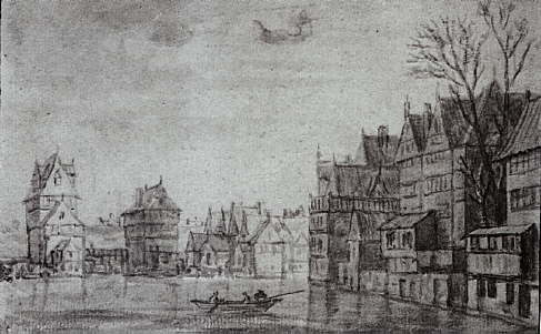 Anthonie Waterloo - 1660 Blick von der Kleinen Alster auf die Mühlenwerke “Bei der Kunst” am Jungfernstieg. (Ölgemälde)